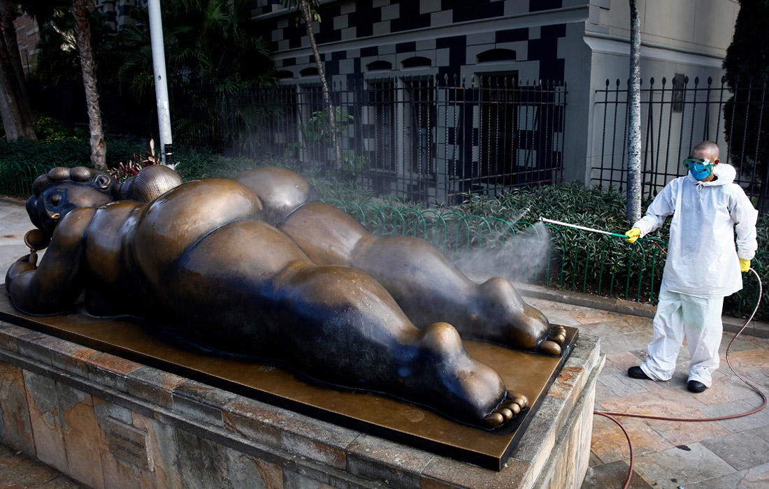 3 апреля. Число заразившихся коронавирусом COVID-19 в мире превысило миллион человек. На фото: дезинфекция улиц в колумбийском городе Медельин.