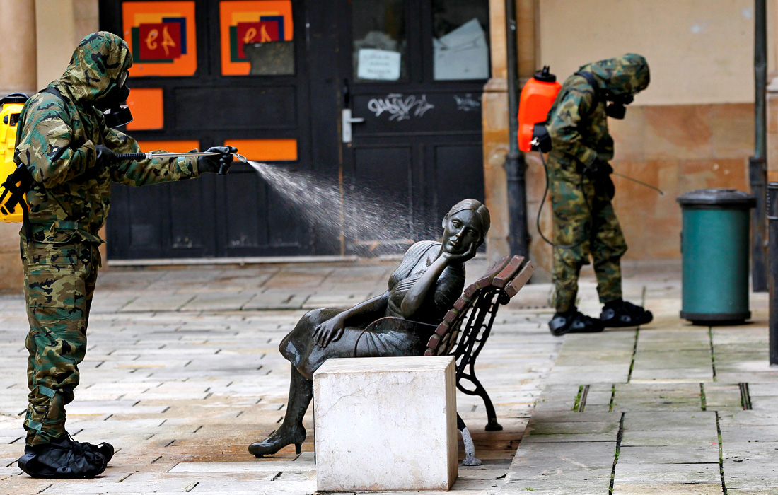 13 апреля. Дезинфекция общественных мест в испанском Овьедо