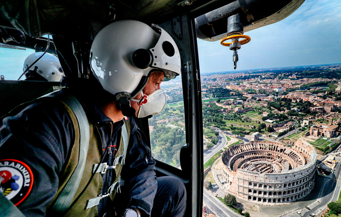 14 апреля. Итальянские карабинеры используют вертолеты для патрулирования улиц Рима
