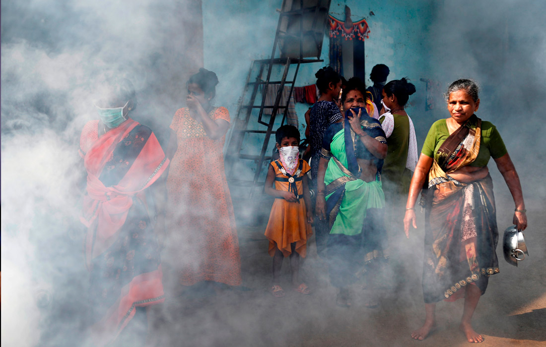 19 апреля. В индийских трущобах увеличивается число смертей от COVID-19. На фото: дезинфекция района Дхарави, в котором проживает около миллиона человек.