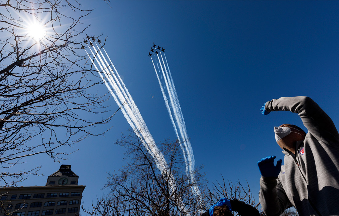 29 апреля. Группы высшего пилотажа ВВС США "Голубые ангелы" и "Буревестники" устроили авиашоу над Нью-Йорком в поддержку врачей