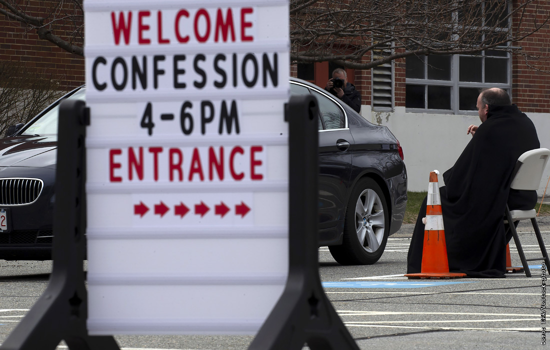 В американском штате Массачусетс церковь Св. Марии в Челмсфорде начала принимать исповеди прихожан на парковке из-за пандемии