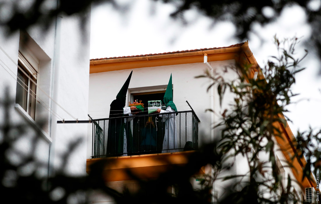 Кающиеся грешники из братства La Columna на балконе в Ронде, Испания