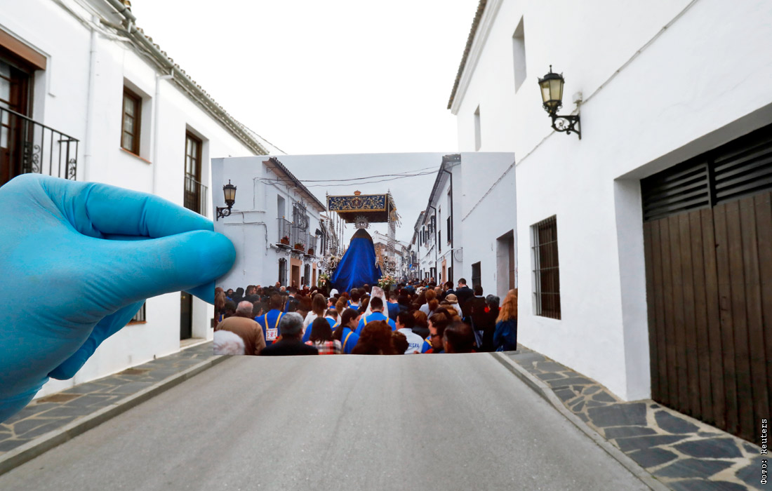 Фотография религиозного шествия в Ронде, сделанная год назад. В Испании запретили проводить массовые мероприятия из-за коронавируса.