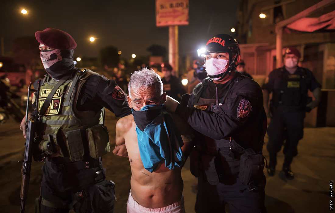 В Лиме (Перу) полицейские задержали мужчину за нарушение комендантского часа, объявленного правительством в связи с коронавирусом