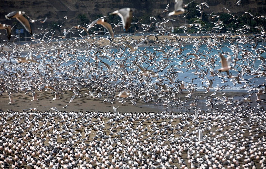 В Лиме во время карантина сотни птиц заняли один из самых популярных пляжей в городе