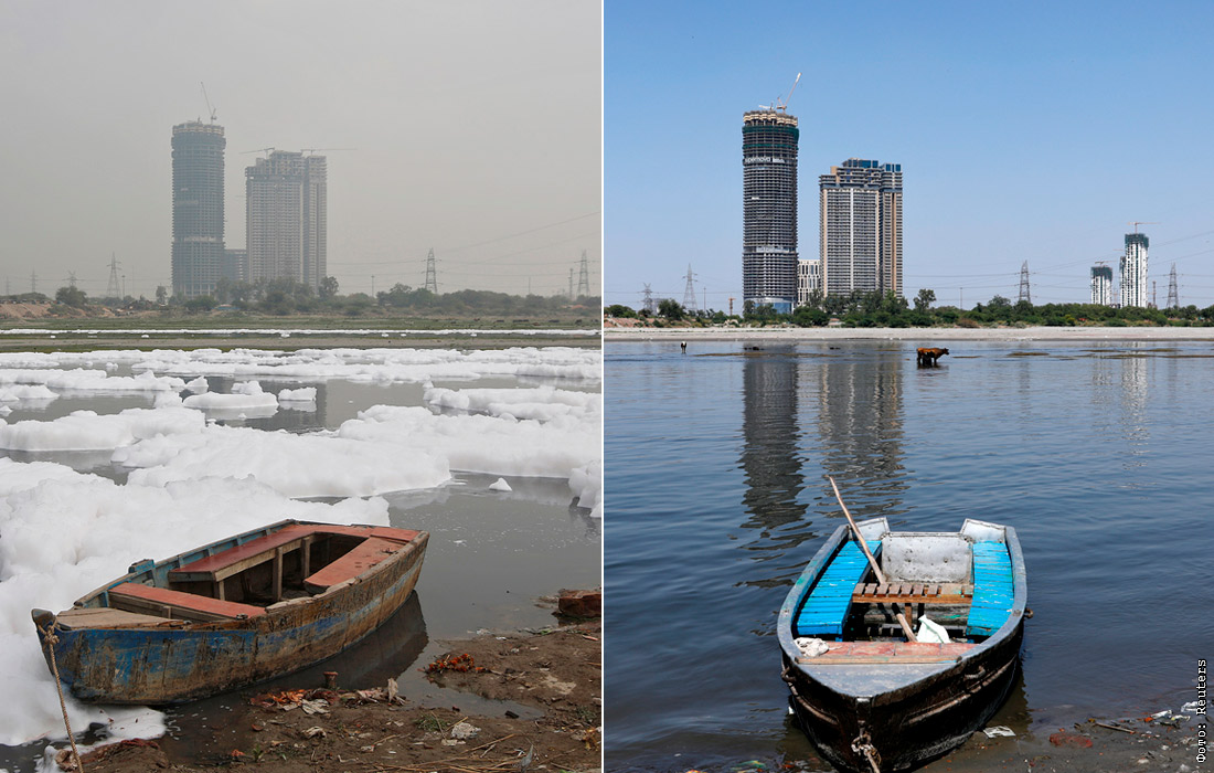 В Индии снизился уровень загрязнения воздуха. На шестой по счету день карантина в столице страны Дели, которую в прошлом году признавали мегаполисом с самым загрязненным воздухом в мире, показалось голубое небо.