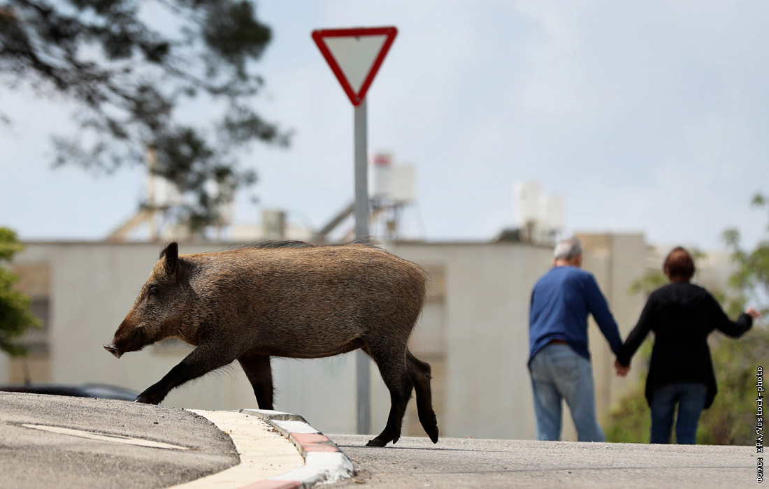 На опустевших из-за карантина улицах израильского города Хайфа появились дикие кабаны