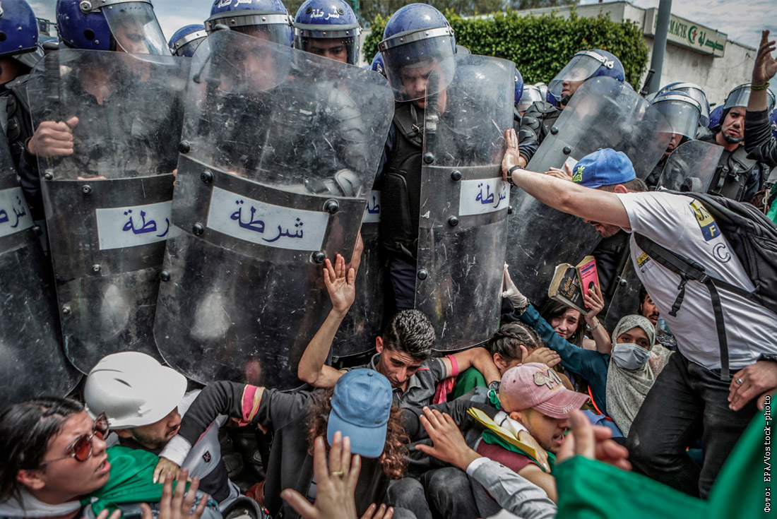 Столкновение студентов и полиции во время антиправительственной демонстрации в Алжире. Митингующие требовали свержения президента.