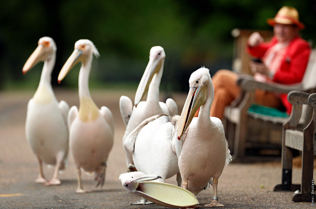 Пеликаны в парке Сент-Джеймс в Лондоне