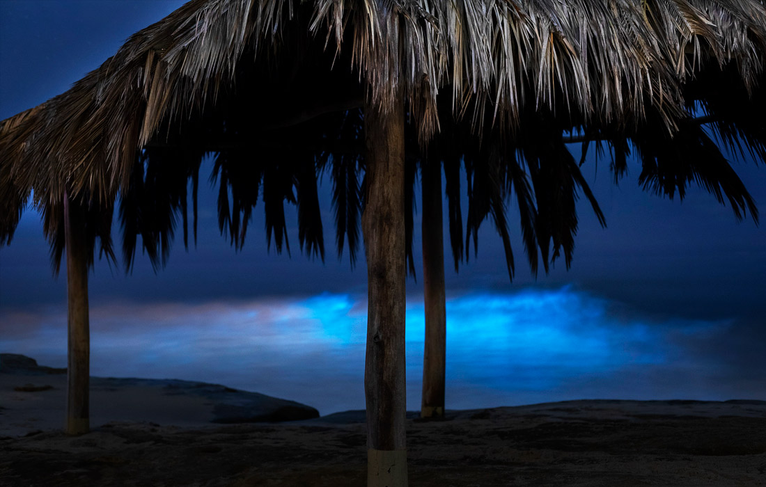 Цветение биолюминесцентных водорослей вдоль побережья Калифорнии осветило воды океана неоновым голубым свечением