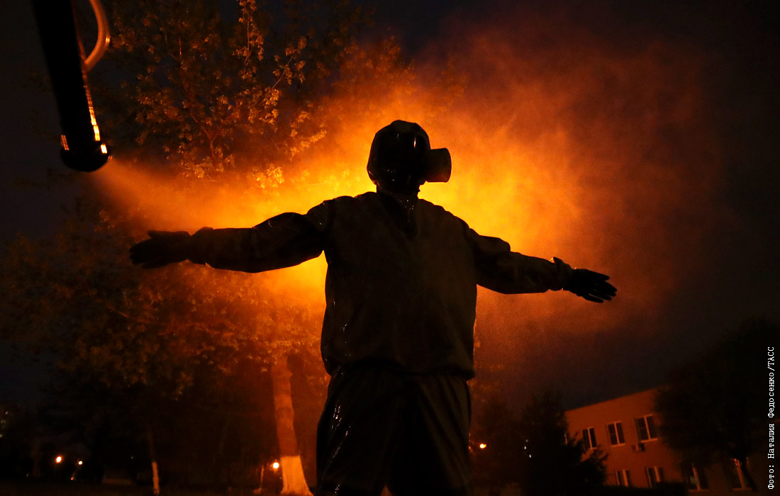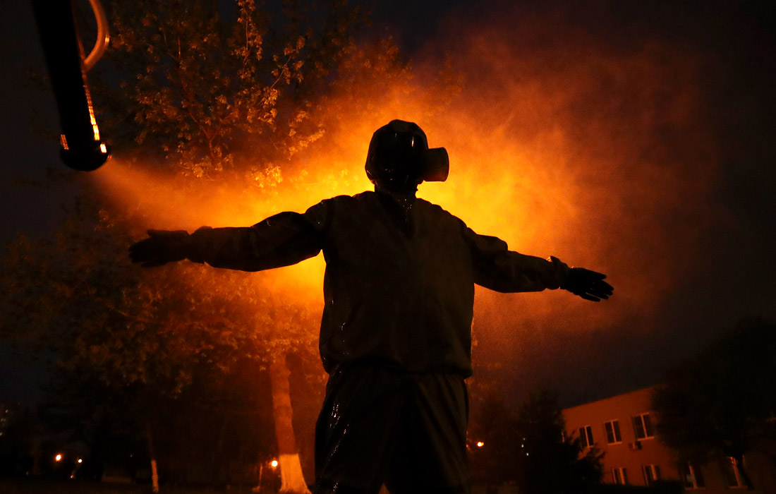 В Минске военнослужащие провели санитарную обработку РНПЦ травматологии и ортопедии в целях борьбы с распространением коронавирусной инфекции