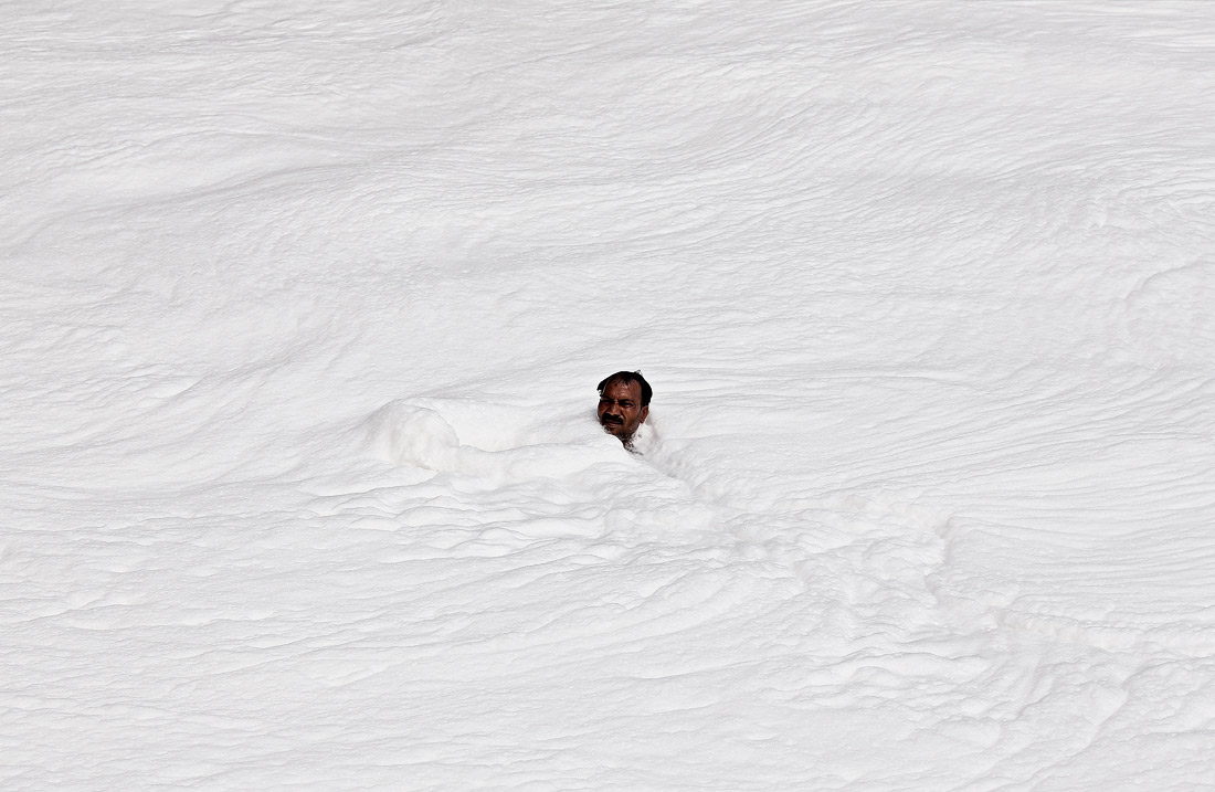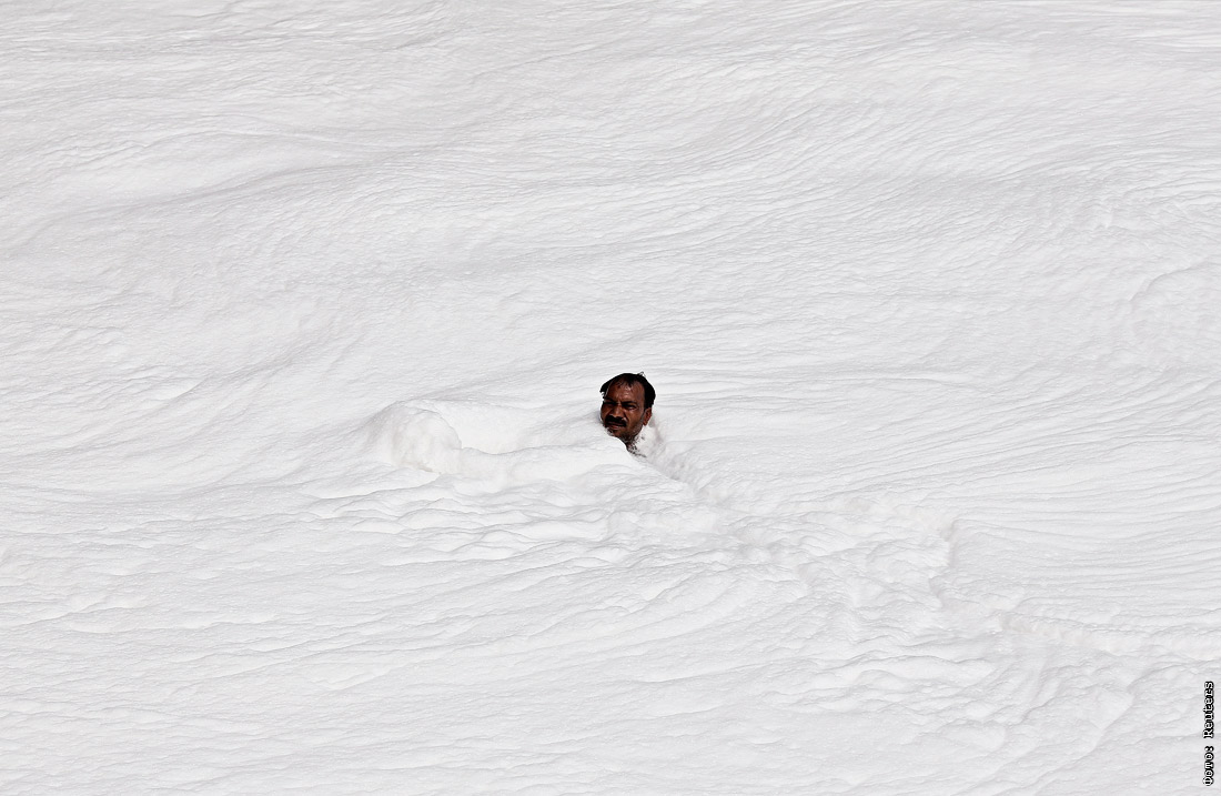 Житель Нью-Дели плавает в загрязненных водах реки Ямуна