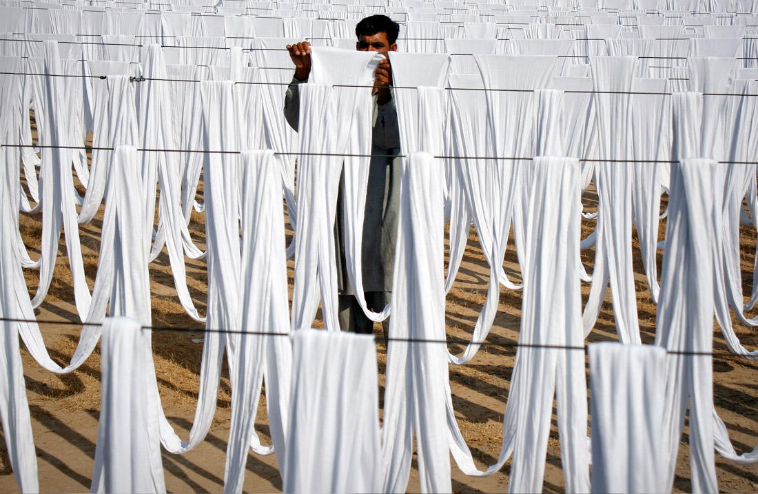 Сушка ткани для производства чулочно-носочных изделий в Фейсалабаде, Пакистан