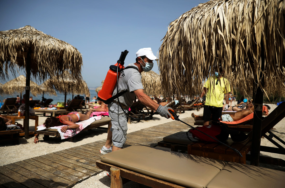 В Греции из-за очень жаркой погоды разрешили посещать пляжи. Посетителей просят соблюдать безопасную дистанцию.