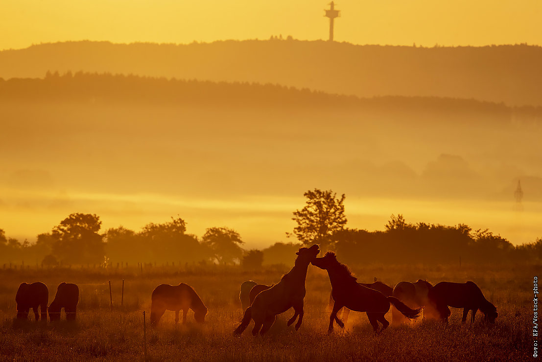 Чистокровные жеребцы на конном заводе во Франкфурте