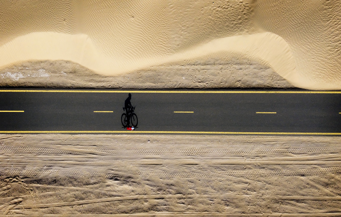 Велосипедист на дороге в Дубае
