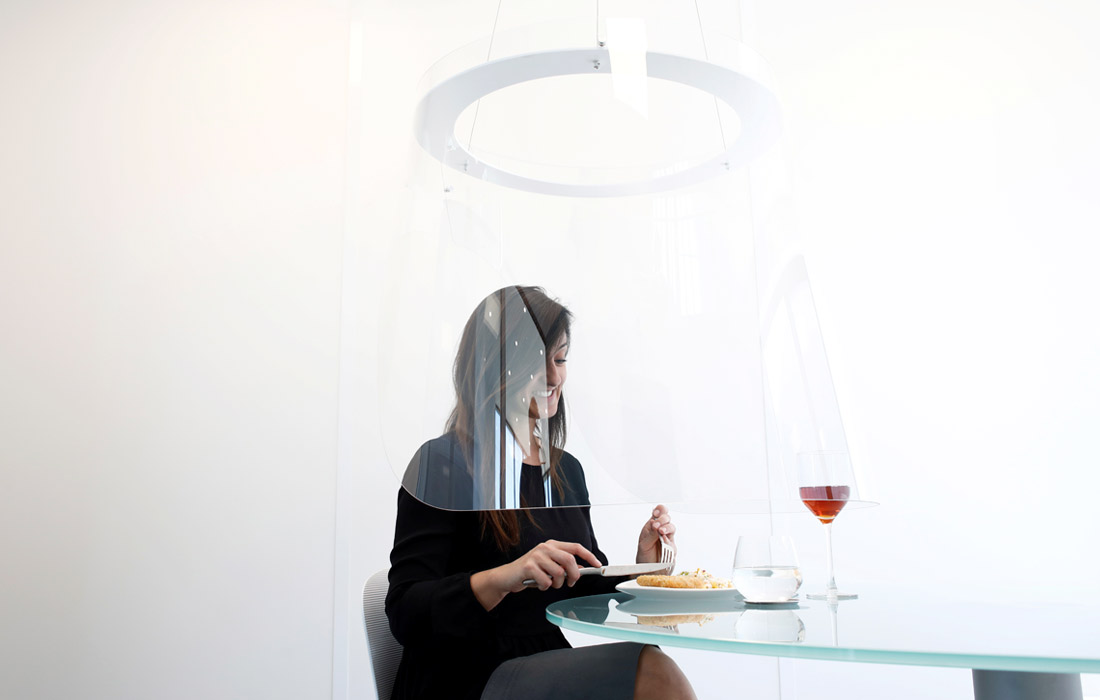 Французский дизайнер Кристоф Гернигон создал защитный экран из оргстекла, который обезопасит посетителей ресторанов от коронавируса
