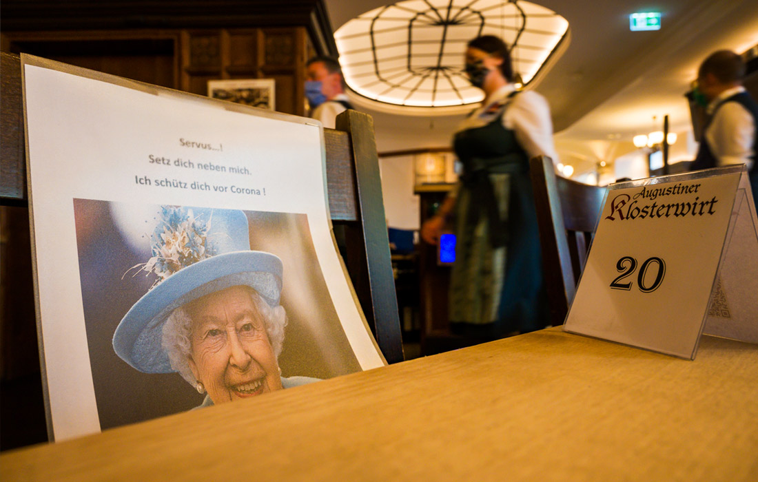 В ресторане Klosterwirt в Мюнхене ограничили посадочные места с помощью фотографий с изображением знаменитых людей