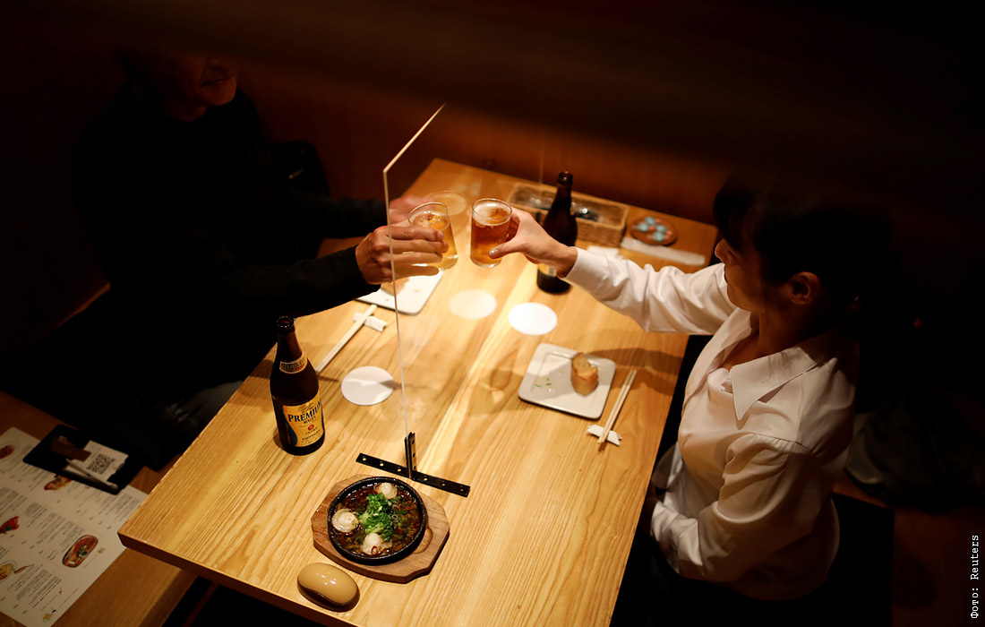 В баре Kichiri Shinjuku в Токио установили на столах прозрачные экраны