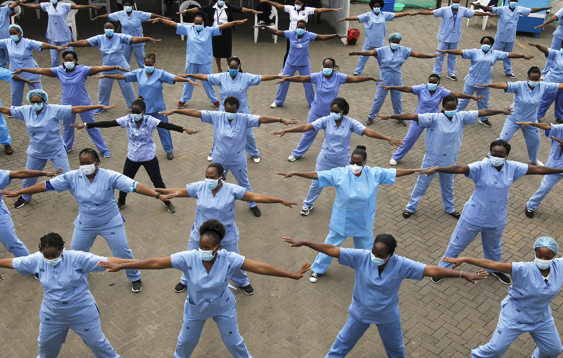 В Найроби медсестры приняли участие в программе аэробного фитнеса Zumba, которую разработали, чтобы помочь им справиться со стрессом от рабочих будней