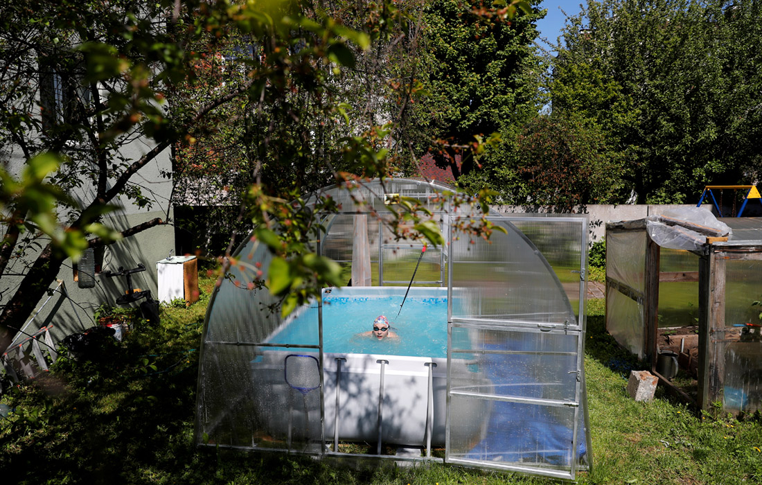 Пловчиха Елизавета Беляева проводит тренировки в бассейне у своего дома в Калининграде