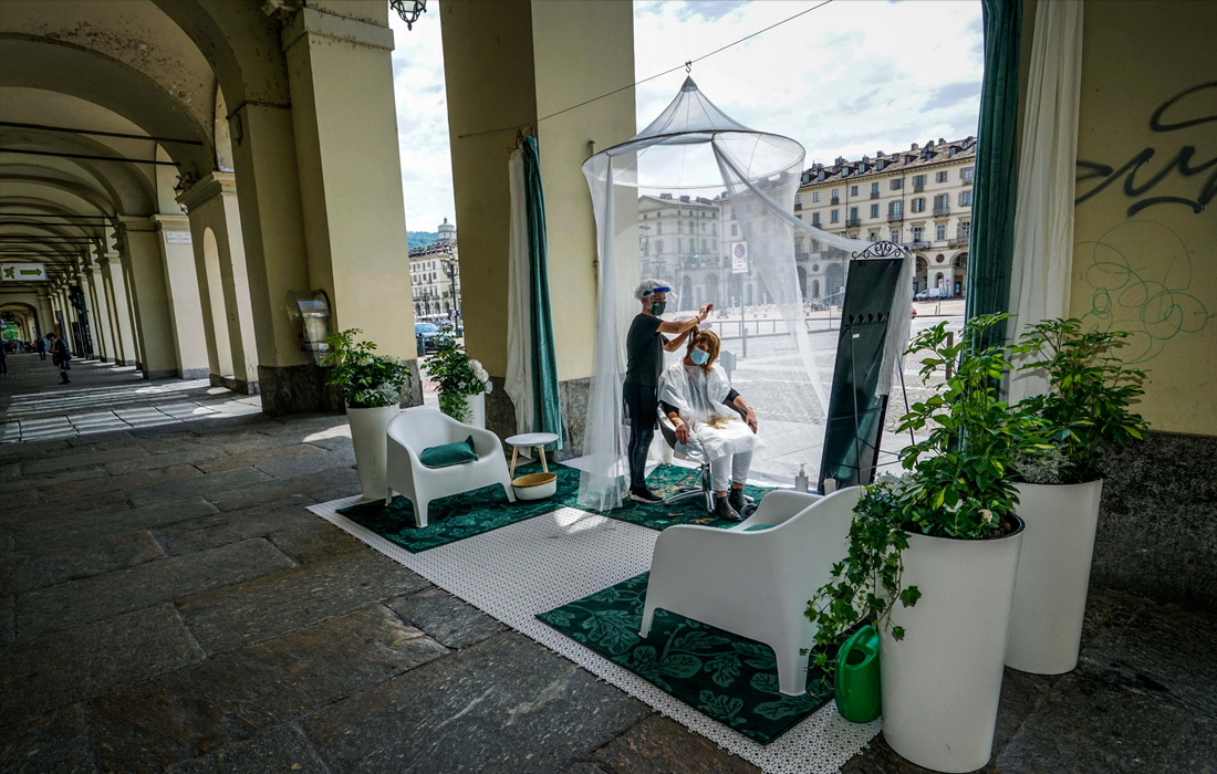 11 июня. Парикмахер из Турина организовала работу в палатке на открытом воздухе.