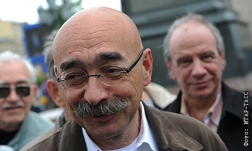 Художник-карикатурист Андрей Бильжо (на первом плане) во время акции писателей и музыкантов "Контрольная прогулка".