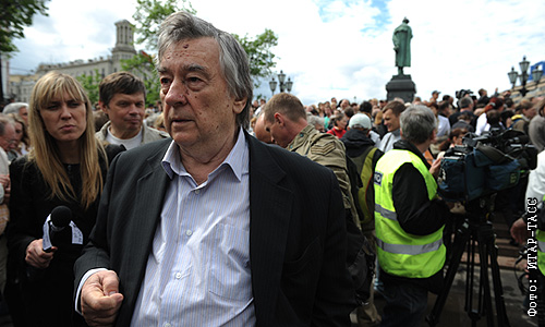 Публицист Александр Проханов во время акции писателей и музыкантов "Контрольная прогулка" на Пушкинской площади.