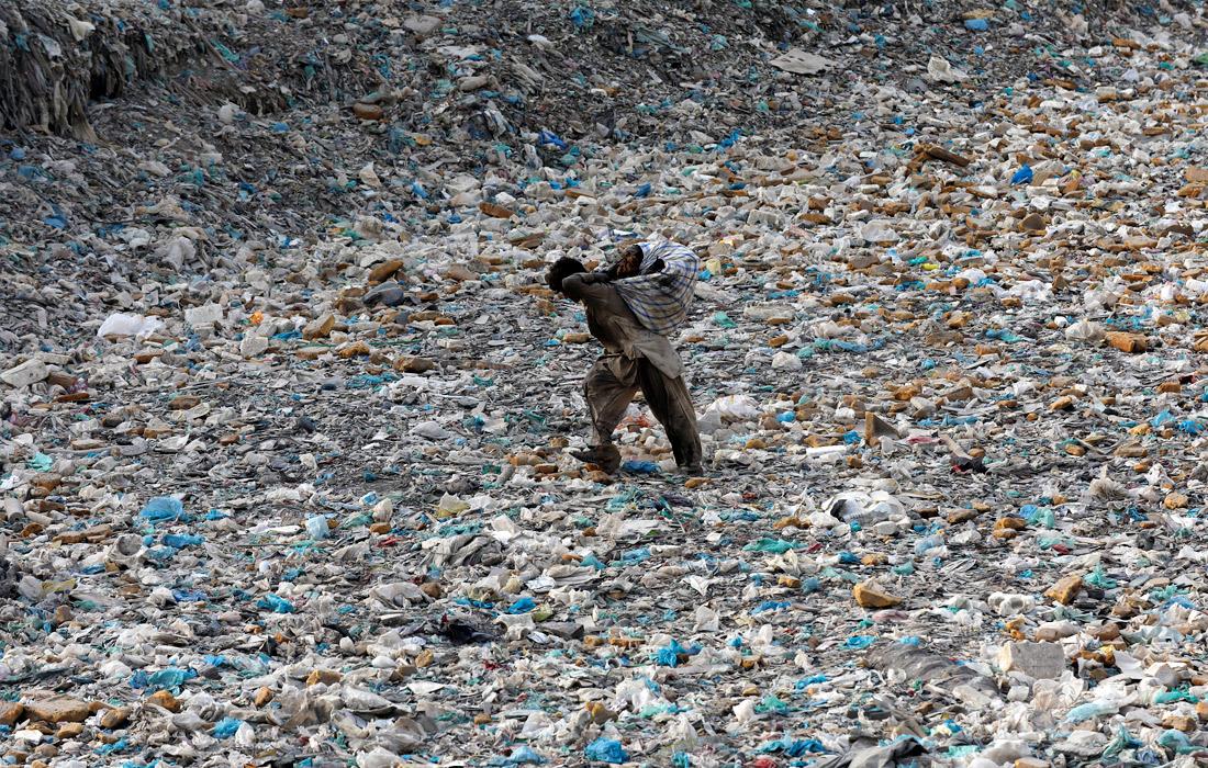 Ежегодно 5 июня отмечается Всемирный день охраны окружающей среды. На фото: юноша собирает вторсырье на свалке в Карачи, Пакистан.