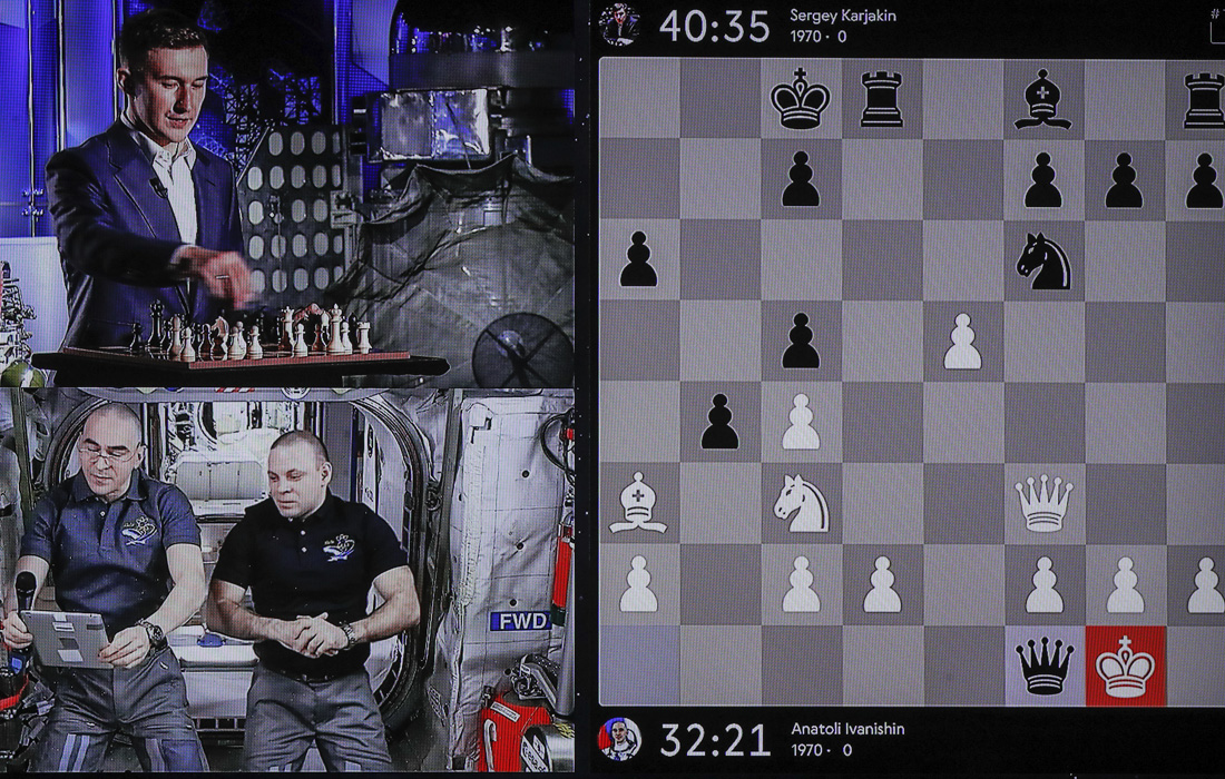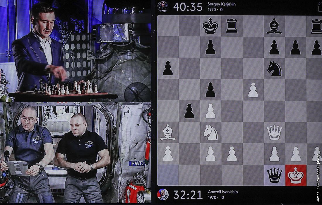 Шахматный матч "Космос-Земля" прошел между чемпионом мира по быстрым шахматам Сергеем Карякиным и космонавтами, находящимися на борту МКС