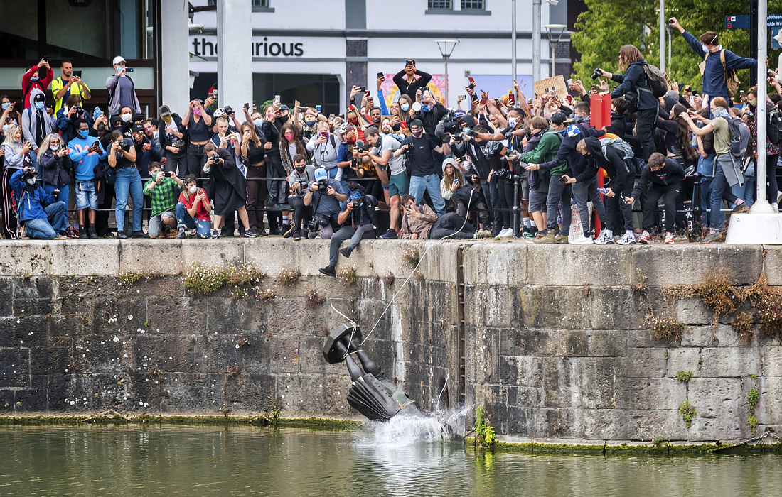 В Бристоле протестующие свергли с пьедестала и затопили в реке бронзовую статую филантропа Эдварда Колстона, который был причастен к работорговле