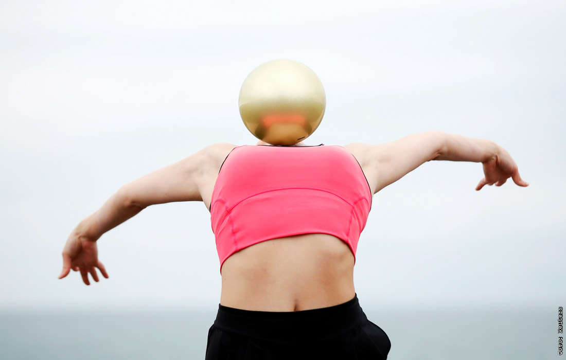 Гимнастка Линн Хатчисон во время тренировки на набережной в Хоуве, Великобритания