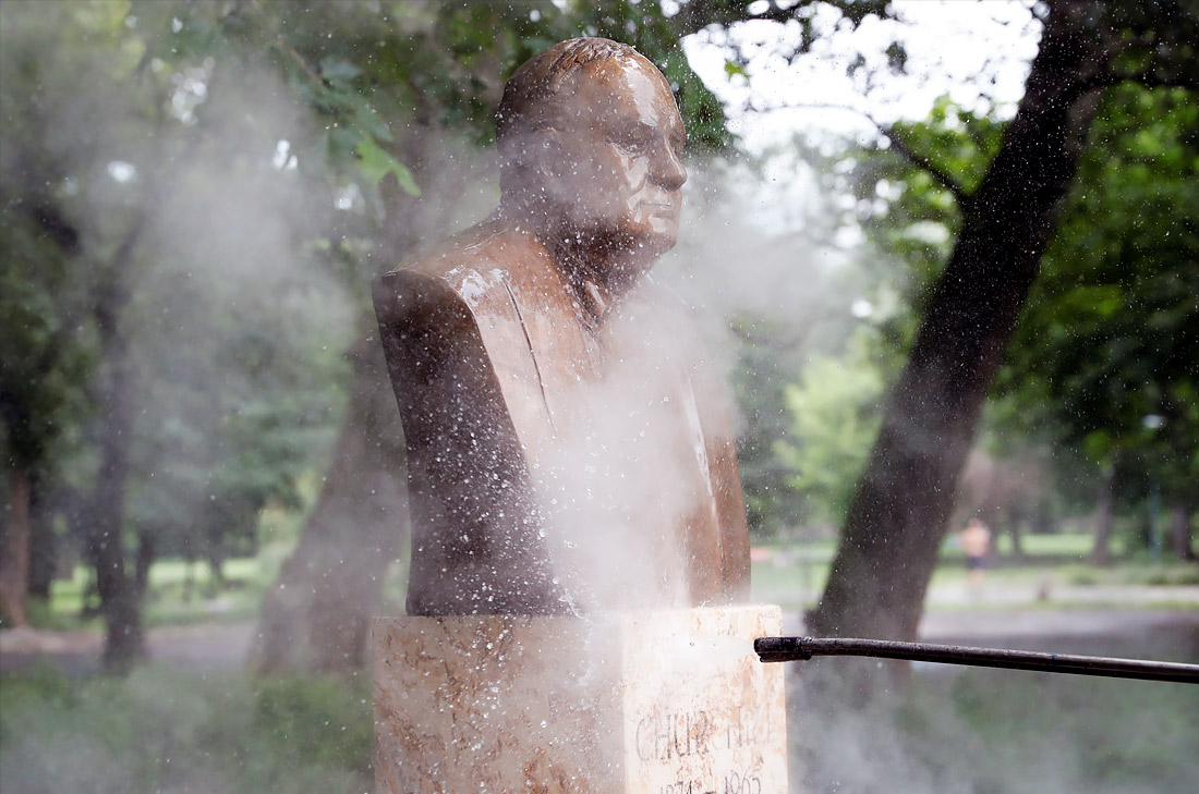 В Будапеште отмывают оскверненную вандалами статую Уинстона Черчилля