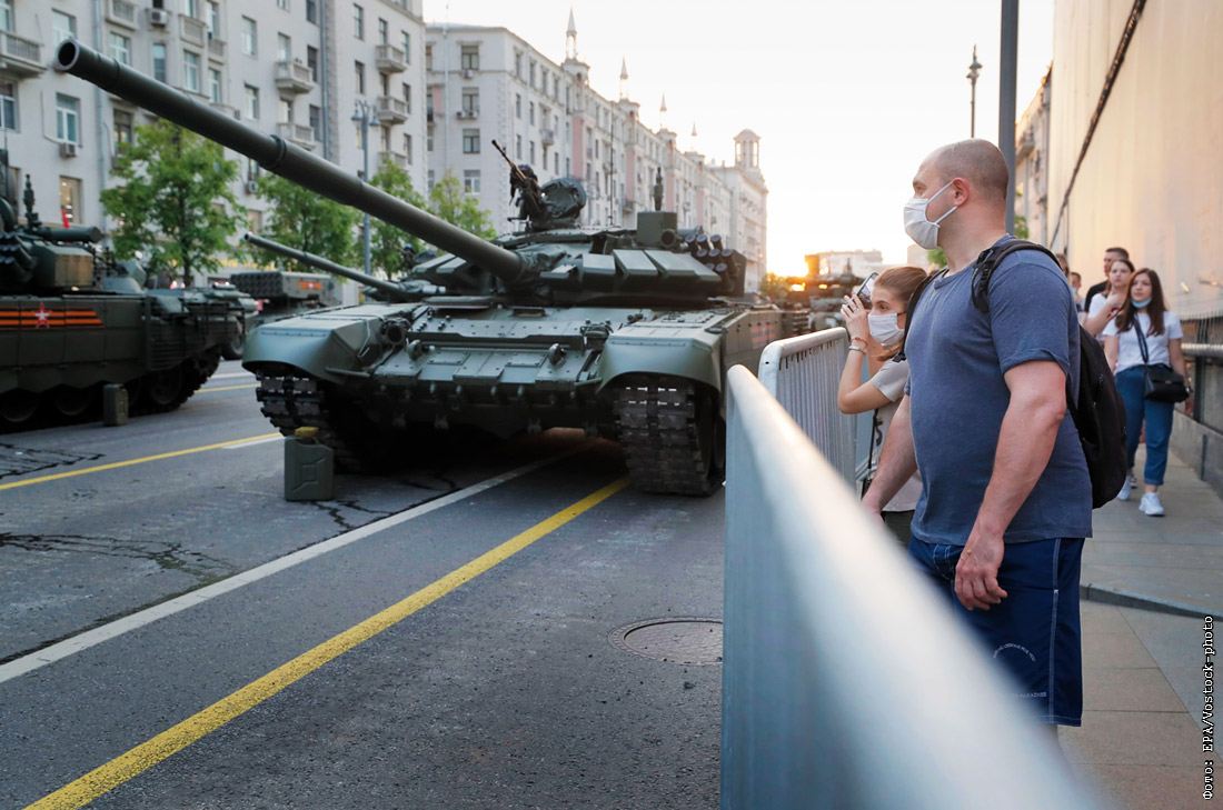 В Москве вечером 17 июня прошла репетиция парада в честь 75-летия Победы в Великой Отечественной войне. Жители столицы могли наблюдать движение колонны военной техники по центральным улицам. Традиционно проходящий 9 мая парад Победы был перенесен на 24 июня из-за ситуации с коронавирусом.