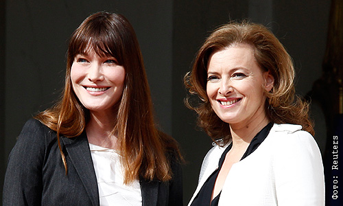 Бывшая первая леди Франции Карла Бруни-Саркози и новая первая леди Франции Валери Триервейлер.