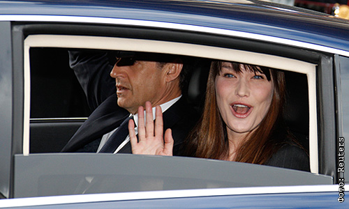 Николя Саркози и Карла Бруни-Саркози покидают Елисейский дворец.