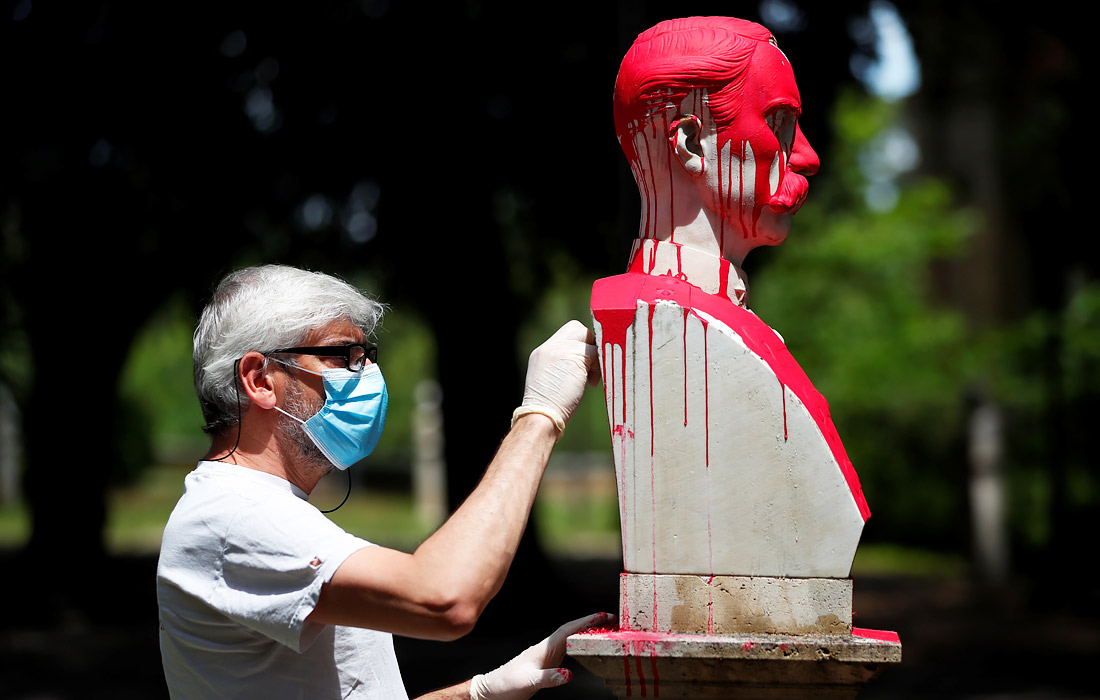 Статую итальянского генерала Антонио Бальдиссеры облили краской в знак протеста против расизма в Риме
