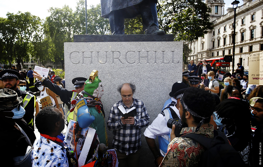 В Лондоне на Парламентской площади рядом со статуей Уинстона Черчилля прошла акция Black Lives Matter