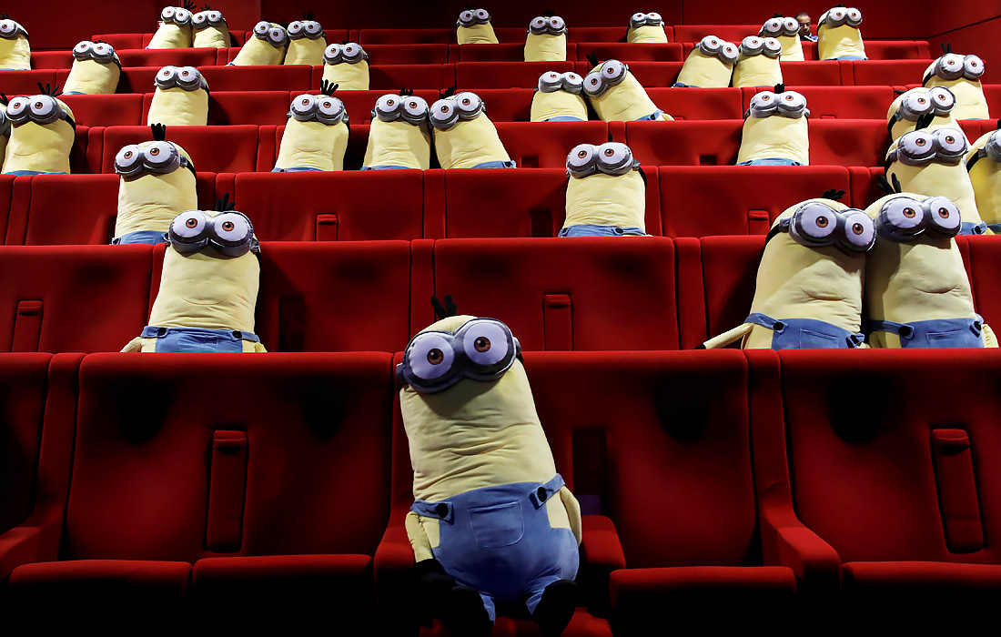 Игрушки на креслах кинотеатра в Париже для сохранения социальной дистанции между зрителями