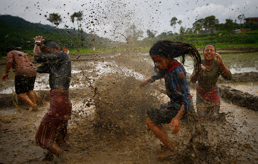 В непальском Бхактапуре прошел национальный праздник Падди, во время которого люди собираются на рисовых полях, обливают друг друга грязью и водой, отмечая таким образом начало сезона посадки риса