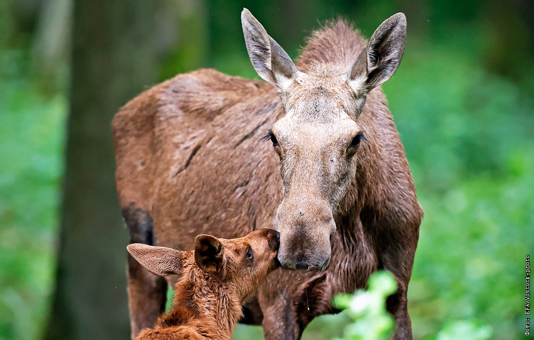 Лоси в парке дикой природы в Бад-Мергентхайм (Германия)