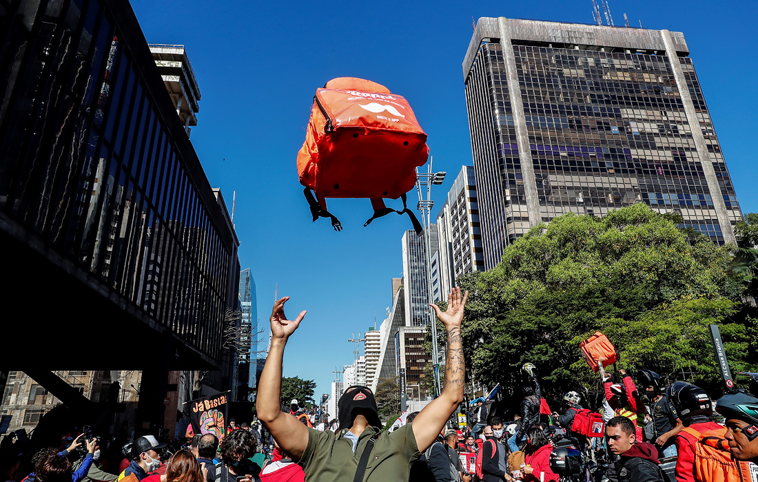 В среду в Сан-Паулу более тысячи мотокурьеров вышли на акцию протеста из-за нарушений условий их труда