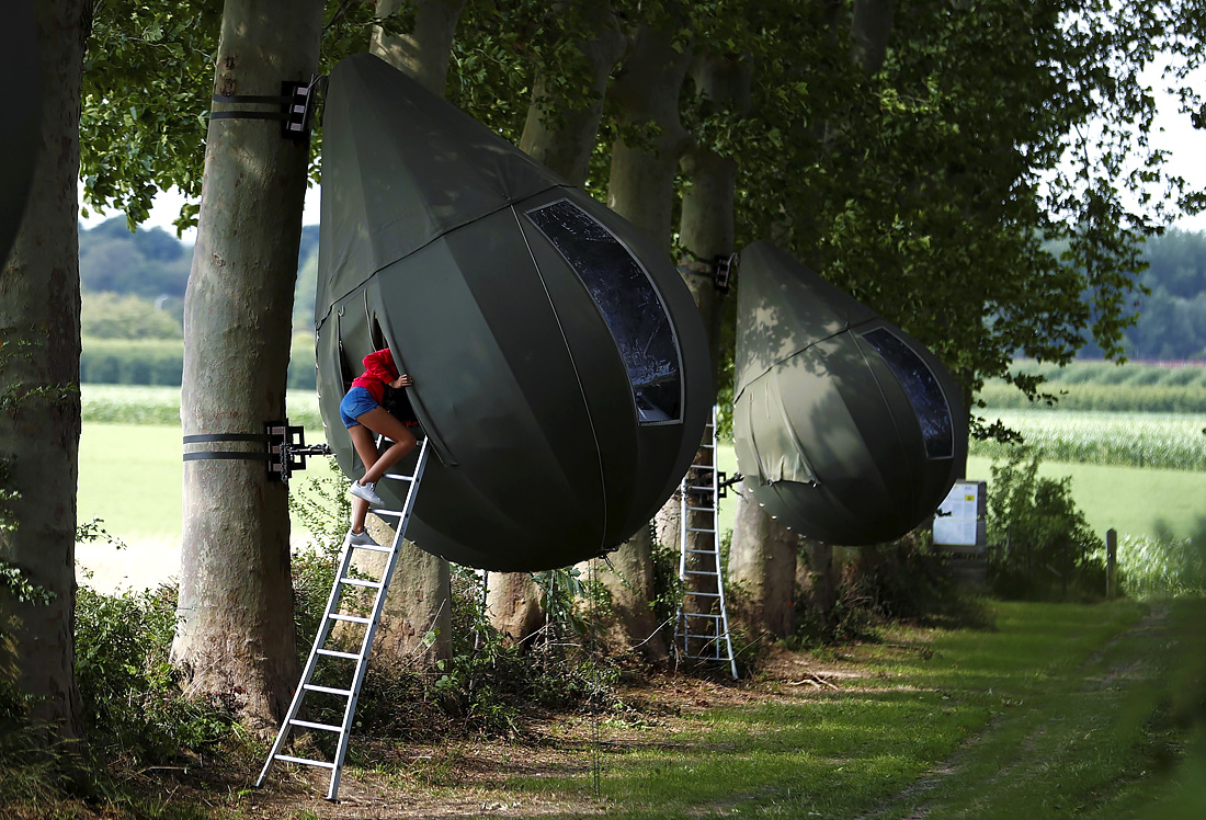 Голландский художник создал в бельгийской сельской местности туристические палатки в форме капли, свисающей с дерева