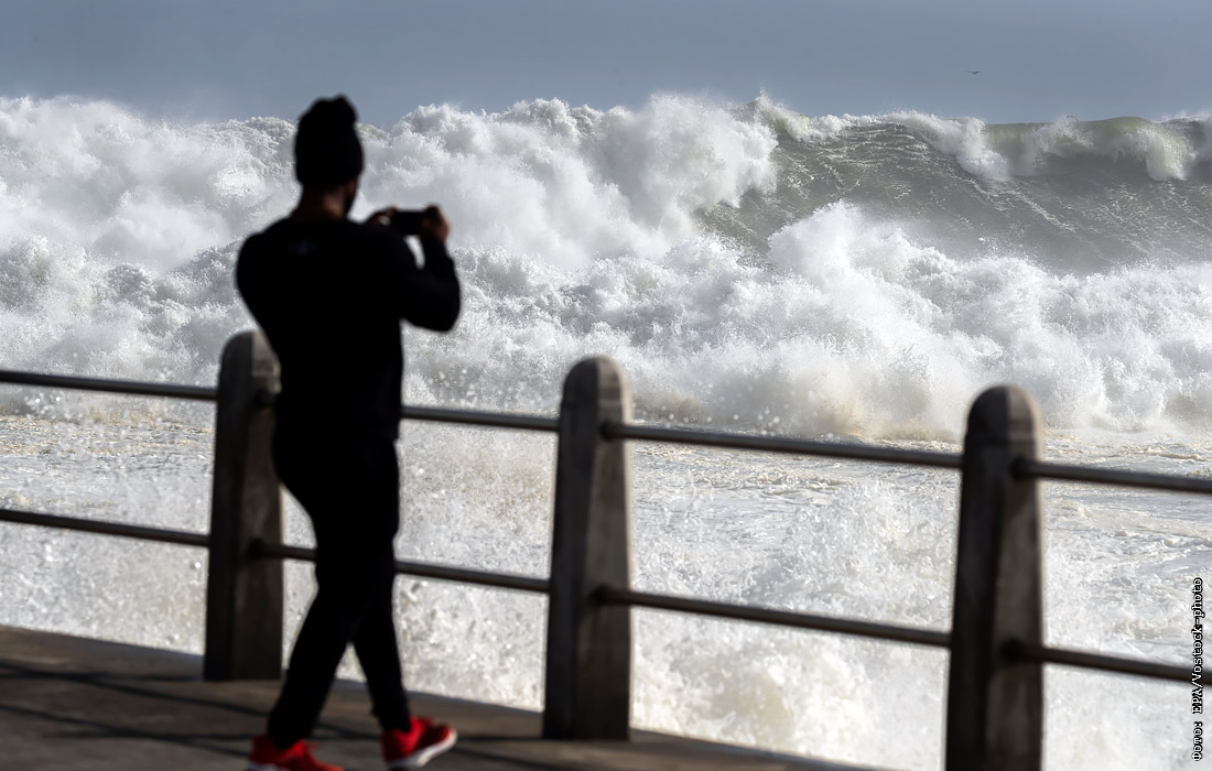 Океанская пена, образовавшаяся во время шторма, покрыла прибрежные районы города Кейптауна на юго-западе ЮАР
