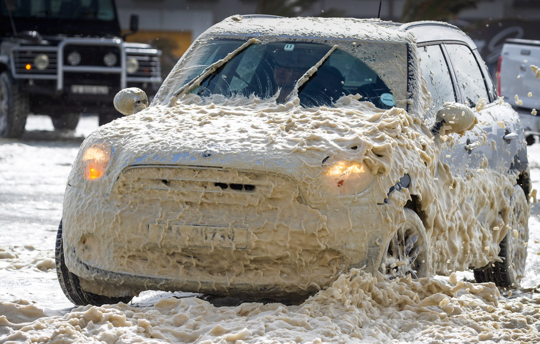 Океанская пена, образовавшаяся во время шторма, покрыла прибрежные районы города Кейптауна на юго-западе ЮАР
