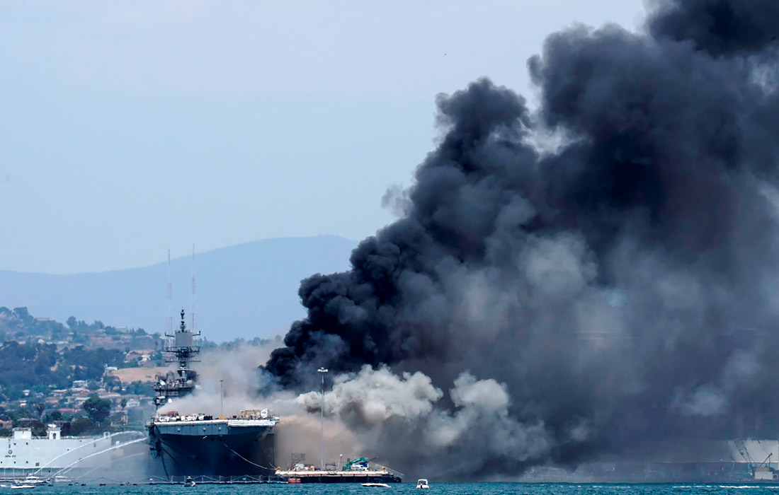 Более 29 часов продолжается пожар на 255-метровом универсальном десантном корабле USS Bonhomme Richard на военно-морской базе в Сан-Диего (Калифорния). В операции пожаротушения, помимо пожарных судов, задействовано три вертолета. С начала возгорания пострадали 57 военнослужащих, в том числе 34 моряка и 23 гражданских лица. Пятеро из них остаются в местном госпитале.