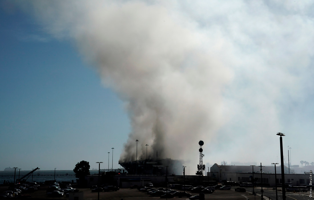 Более 29 часов продолжается пожар на 255-метровом универсальном десантном корабле USS Bonhomme Richard на военно-морской базе в Сан-Диего (Калифорния). В операции пожаротушения, помимо пожарных судов, задействовано три вертолета. С начала возгорания пострадали 57 военнослужащих, в том числе 34 моряка и 23 гражданских лица. Пятеро из них остаются в местном госпитале.