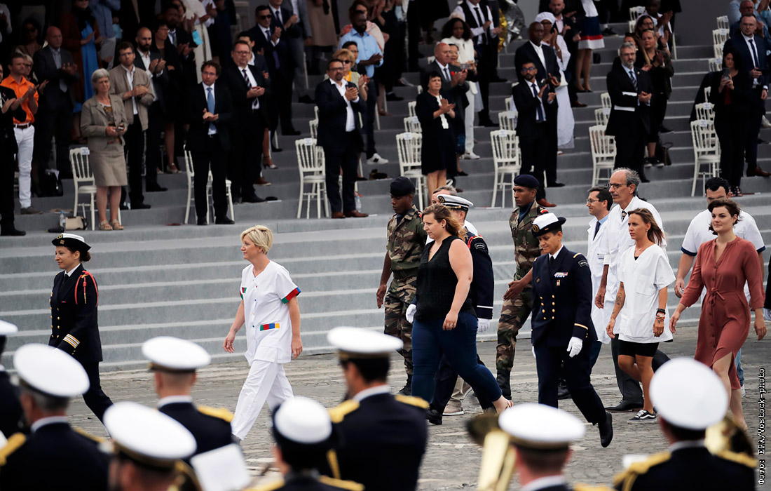К ним под торжественную музыку присоединились медицинские работники в белой униформе