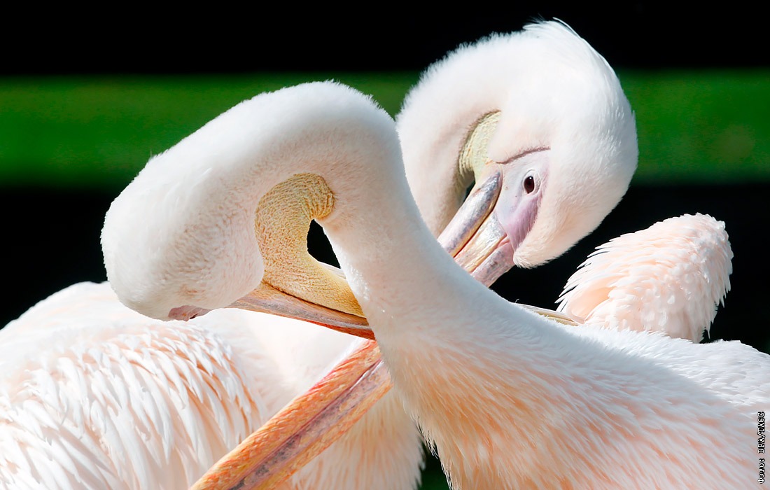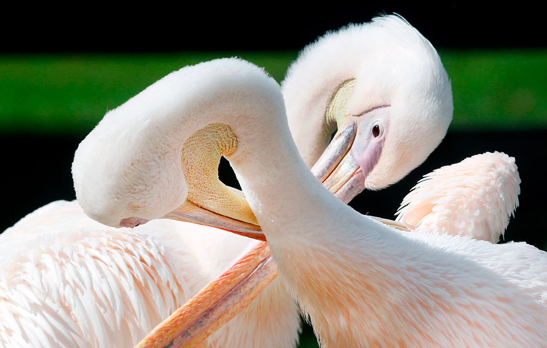 Розовые пеликаны в зоопарке немецкого города Крефельд